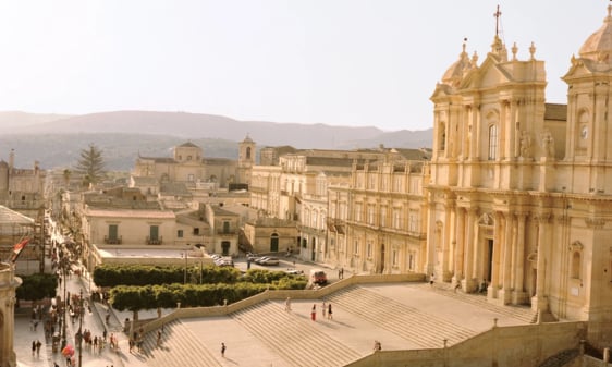 Noto is especially beautiful in the evening, when the sun sets and the golden stone buildings glow. After dinner, the cathedral steps come alive with music - a perfect end to your evening before heading back to the villa.