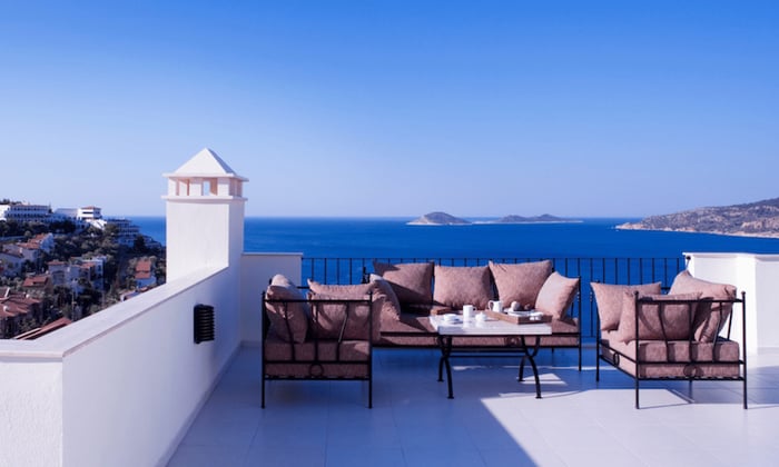 High above the harbour town of Kalkan, this elegant retreat boasts expansive views across Turkey's celebrated Turquoise Coast. A panorama that transforms beautifully from day to night.