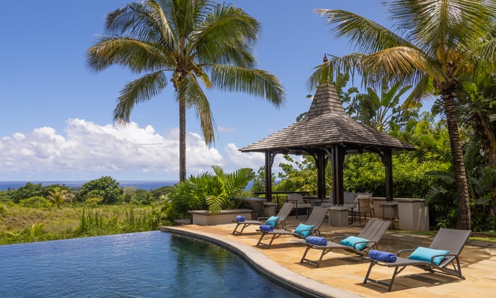 Elevated above Mauritius' dazzling coastline, Stargazer is perfectly positioned to capture uninterrupted Indian Ocean views. Floor-to-ceiling openings frame the ever-changing sea, while the infinity pool appears to merge seamlessly with the horizon.