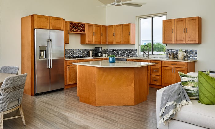 With three master suites and an upstairs penthouse, this four-bedroom haven offers more than enough room to lay back and enjoy unforgettable days of island living. The gourmet kitchen is fully equipped for preparing wonderful meals.