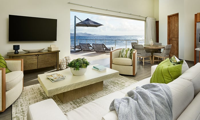 The outdoor living area will allow you to truly savor the enchanting seascape, and the contemporary interiors -done in stucco, stone and rich woods -are the perfect retreat after a day of soaking in the sun.