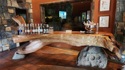 Open for lunch and on request for exclusive dinners, L'Alchimiste is an upscale restaurant which seats 80. L'Alchimiste specializes in a unique cuisine, prepared with local products sourced from the estate itself. A typical menu might include exotic delicacies such as palm heart or dishes featuring deer and wild pig, enhanced with fine wines imported from France and the main continents.