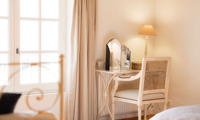 Bordered by a stone wall gate, Villa Marianne, is surrounded by a sprawling garden strewn with fruit orchards, cypress trees and weeping willows.