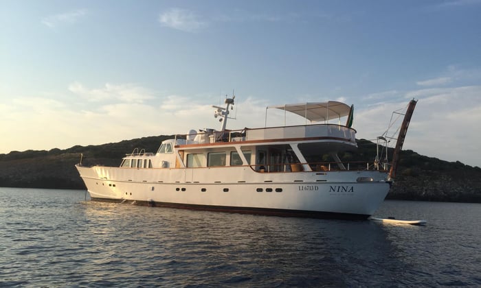 Built in 1964 by the renowned Costaguta Shipyard in Chiavari, NINA embodies the quiet glamour of mid-century Italian design. Cedar-toned interiors, graceful lines, and beautifully preserved woodwork create an atmosphere that feels intimate and soulful. After eight years under the devoted stewardship of her owner, she has joined the Classic Charters fleet.