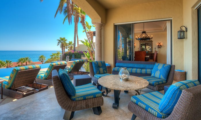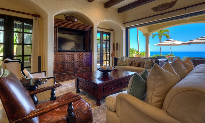 Small balconies and seating areas off the luxuriously appointed bedrooms, provide additional spaces to read, nap, or take in the views. At over 6,300 total sq. feet, this home offers space enough to spread out, with cozy touches to make it feel like home.